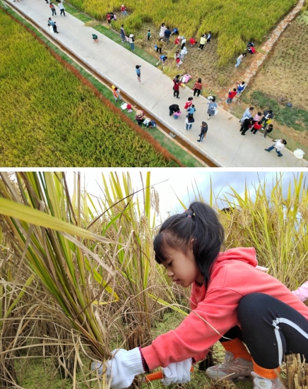 11月12日,市政集團(tuán)建設(shè)的龍州濕地水稻田迎來(lái)了豐收季,藍(lán)天白云倒影在清澈見(jiàn)底的湖面,伴隨著五彩繽紛的波斯菊花海搖曳生姿,金黃色的稻谷在秋風(fēng)中散發(fā)著陣陣稻香...城市的繁華與美不勝收的風(fēng)景和諧共生的畫(huà)面,吸引了來(lái)自龍巖中心城區(qū)中小學(xué)生、家長(zhǎng)及眾多市民前來(lái)參觀、體驗(yàn)。學(xué)生們利用假期走進(jìn)田間課堂,真切體會(huì)了龍巖“新晉網(wǎng)紅打卡地”的獨(dú)特魅力。