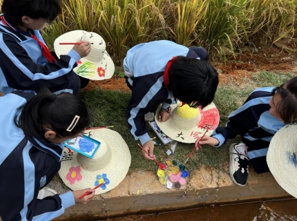 體驗(yàn)的快樂(lè)和汗水激發(fā)了孩子們的興趣,水稻田旁,孩子們用豐富的色彩,在草帽上留下了自己的奇思妙想,孩子們相互交流,處處歡聲笑語(yǔ),吸引了路過(guò)的游客駐足觀賞。