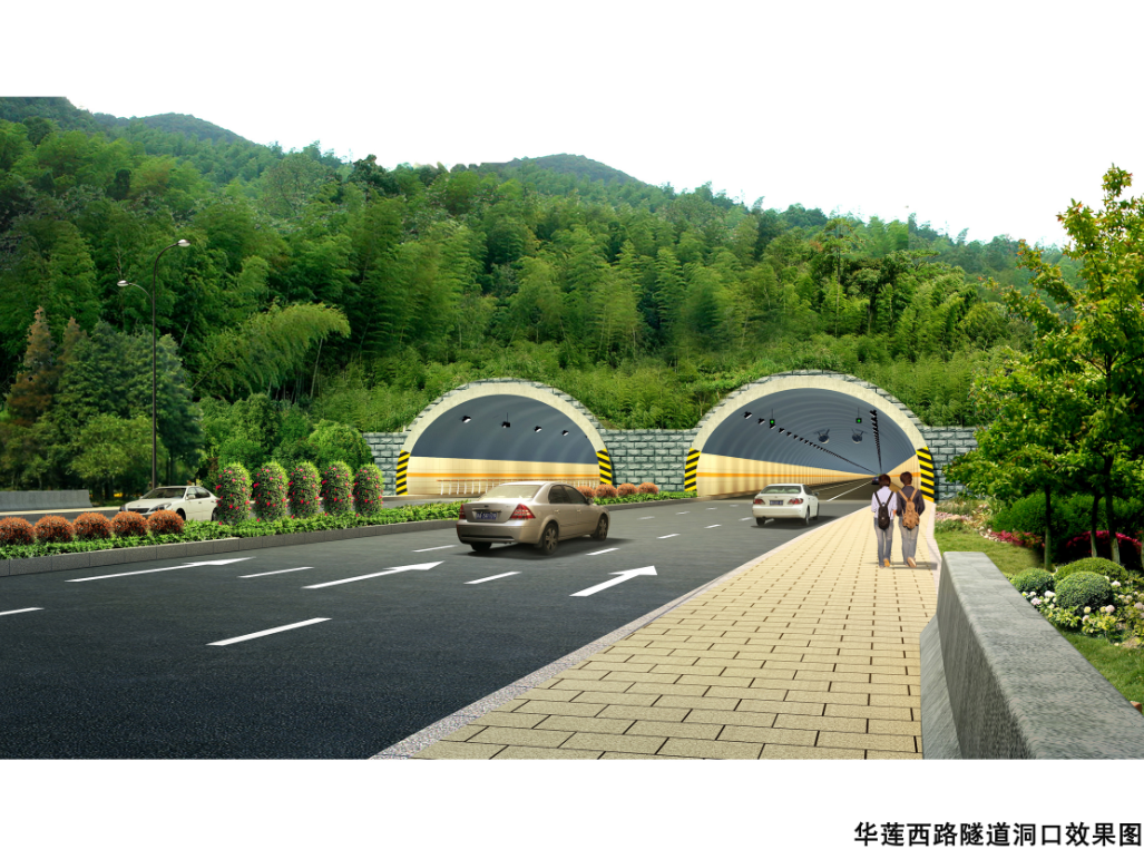 華蓮西路一期項目起于紅田路東,終于龍騰路,道路全長2656米、寬40米,雙向六車道,采用改性瀝青路面,含橋梁五座和隧道一座,項目總投資5.4億元。