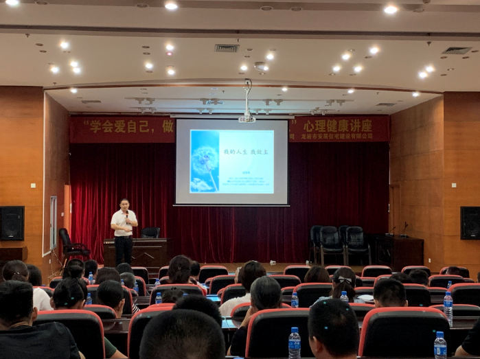 為提高全體員工心理素質,不斷提升心理健康水平,2019年9月10下午,市城公司和安居公司在建設大廈四樓第五會議室共同舉辦“學會愛自己,做個內心強大而溫暖的人”心理健康知識講座,特邀請龍巖市第三醫院康復科劉主任(國家二級心理咨詢師)前來授課